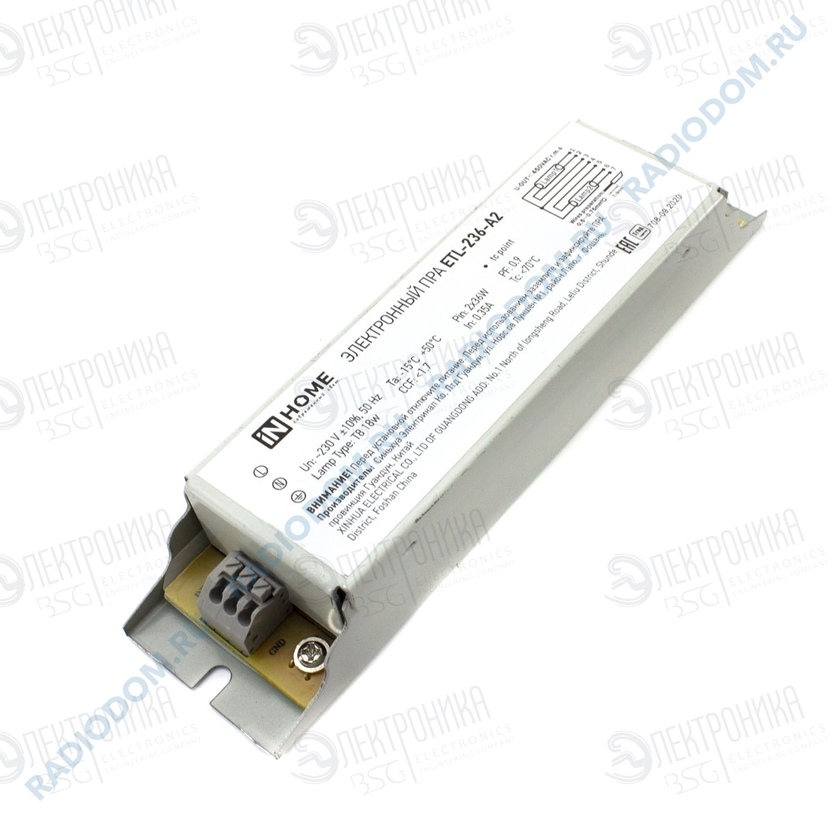 ЭПРА для люминесцентных ламп от In Home представляет из себя электронное устройство, при помощи которого осуществляется пуск и поддержание функционирования линейных светильников с лампами Т8/G13. ЭПРА имеет защиту от перегрева, короткого замыкания и функцию автоматического выключения при выходе из строя лампы. Обеспечивает мгновенный старт и бесшумность работы люминесцентной лампы. Корпус выполнен из негорючего ударопрочного пластика. Компактность и небольшой вес позволяют размещать ЭПРА в потолочных, стеновых, либо мебельных нишах при оборудовании встроенного освещения, а также непосредственно в корпусах осветительных приборов. Малое потребление электроэнергии позволяют создать эффективное энергосберегающее осветительное решение с применением люминесцентных ламп.