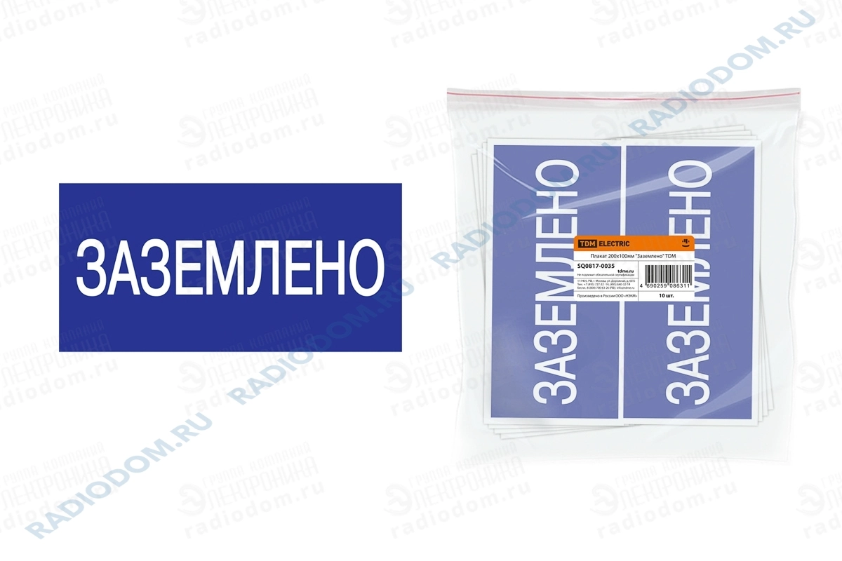 Наклейка "Заземлено" 200х100мм TDM ELECTRIC