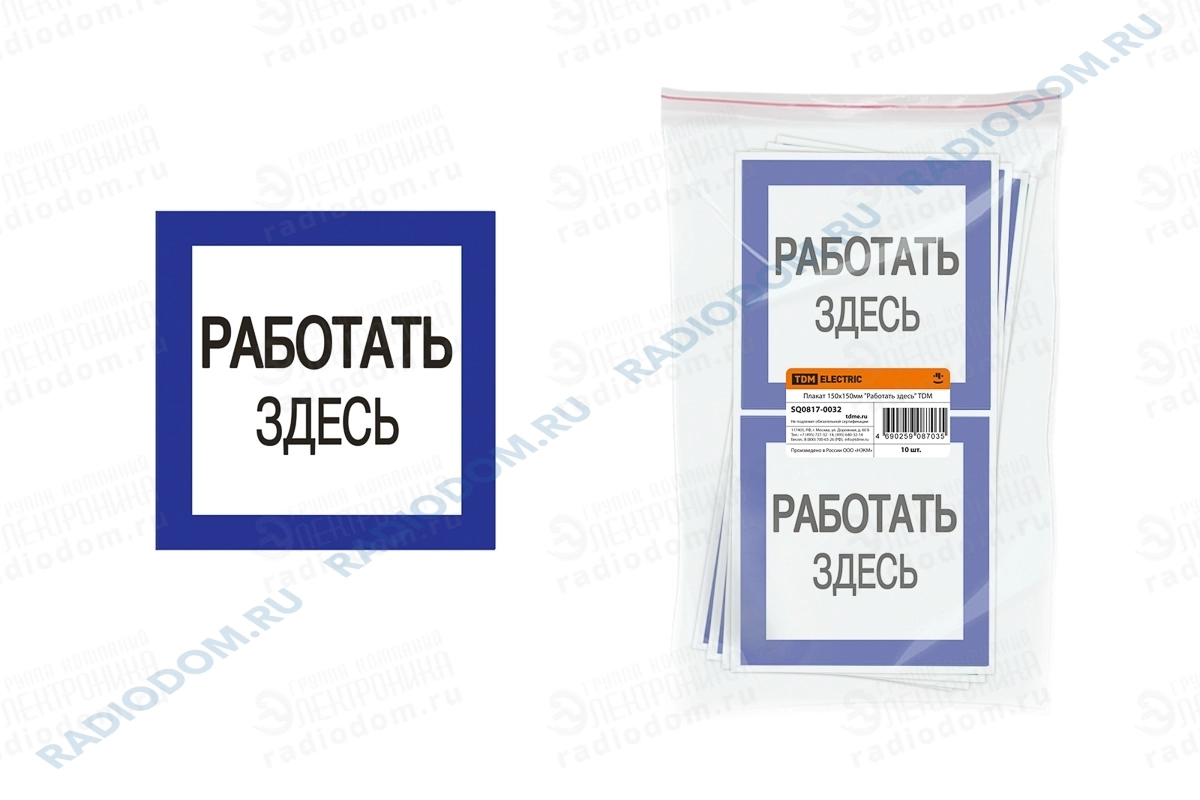 Наклейка "Работать здесь" 150х150мм TDM ELECTRIC
