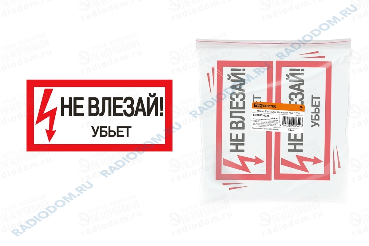 Наклейка "Не влезай. Убьёт" 200х100мм TDM ELECTRIC
