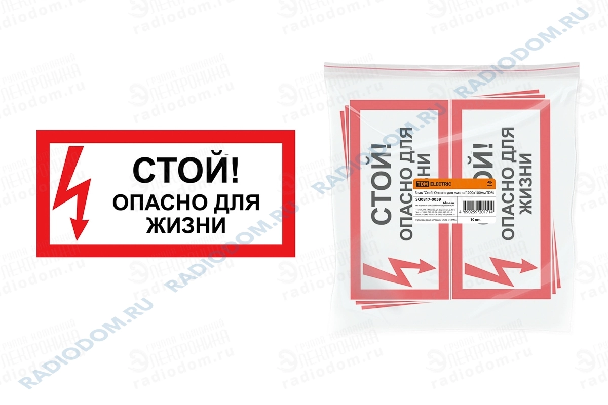 Наклейка "Стой! Опасно для жизни!" 200x100мм TDM ELECTRIC