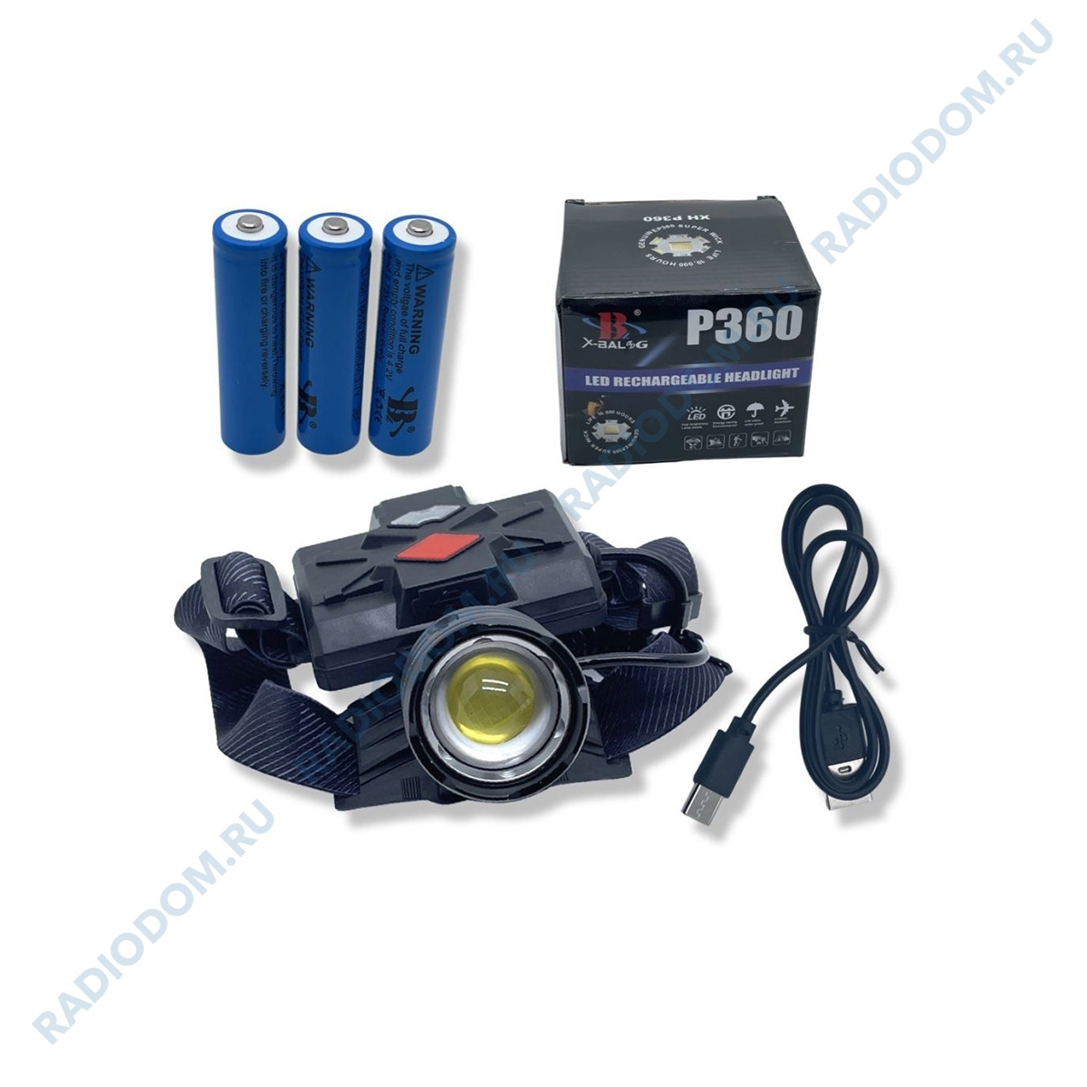 Фонарь светодиодный налобный ACC 3x18650 1LED суперяркий регулировка фокуса заряд от USB L-8077/BL-8078/FA-8077 P360 + красн.COB сзади