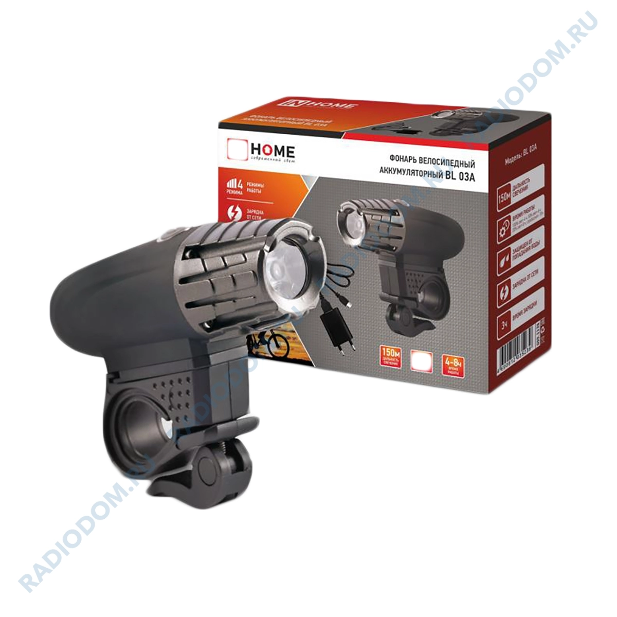 Фонарь велосипедный аккумуляторный BL 03А 3W LED 300Lm 4 режима с з/у 220В ЧЕРНЫЙ 4690612035239 IN HOME