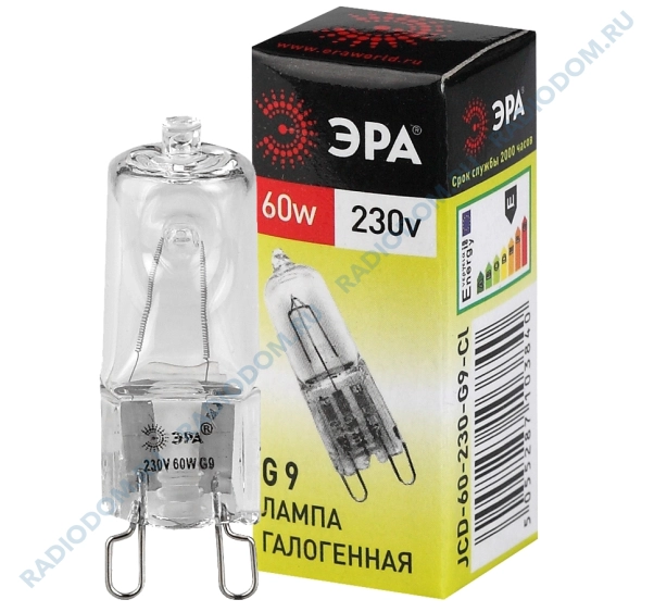 Лампа галогенная ЭРА G9-JCD-60-230V-CL 60Вт капсула теплый белый свет G9