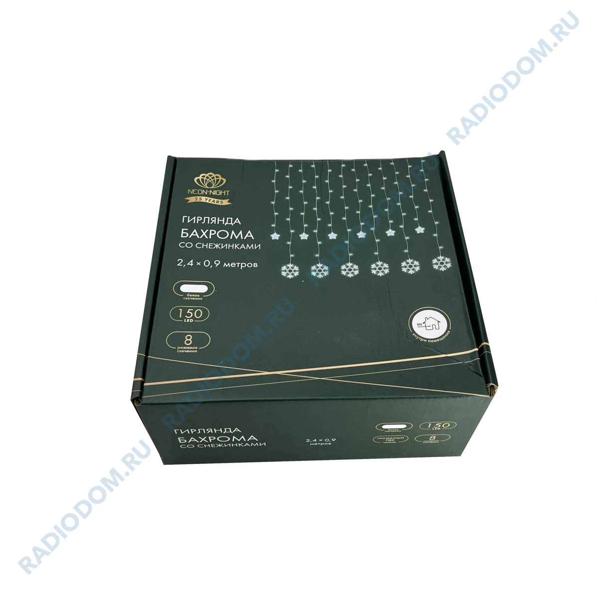 Гирлянда светодиодная 2,4x0,9м 150LED белая, провод прозрачный со снежинкой ''Айсикл'' 255-075 Неон-Найт