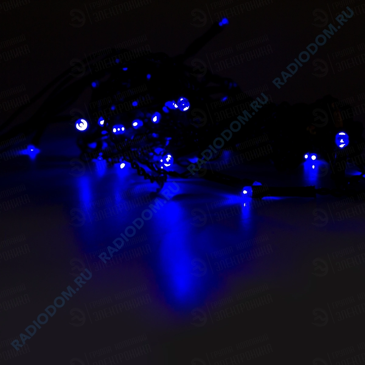 Гирлянда "Бахрома" 1,8 х 0.5 м , IP20, черная нить, 48 LED, свечение синие, с динамикой, 220 В. Гирлянда предназначена для украшения интерьеров и стабильно работает в сухих отапливаемых помещениях.