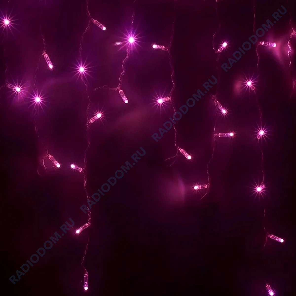 Гирлянда светодиодная 4,8x0,6м 176LED розовая, провод прозрачный ''Айсикл'' 255-148 Неон-Найт
