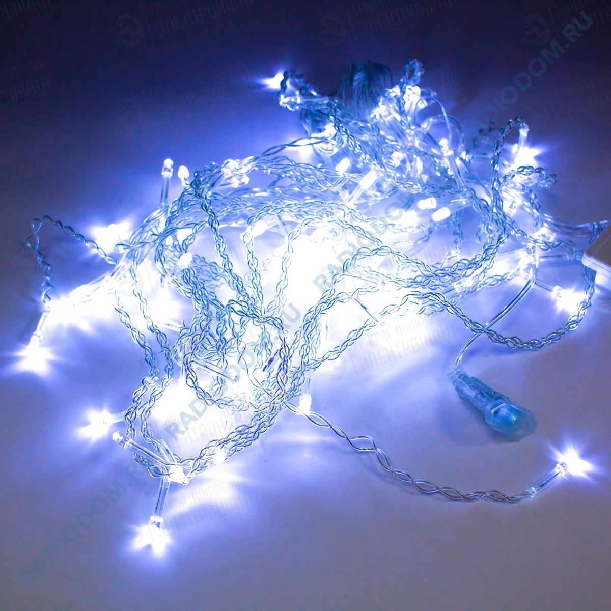 Гирлянда светодиодная "Штора" 1,5x1,5м белая, провод прозрачный, свечение с динамикой Svetka