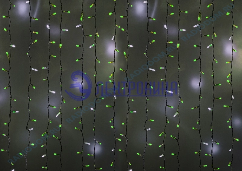 Гирлянда светодиодная 2,0x1,5м 360LED зеленая мерцающая, провод белый ''Плей Лайт Дождь'' 235-226 Неон-Найт