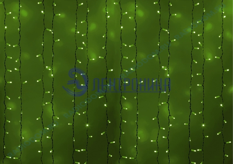 Гирлянда светодиодная 2,0x1,5м 360LED зеленая, провод черный ''Плей Лайт Дождь'' 235-124 Неон-Найт