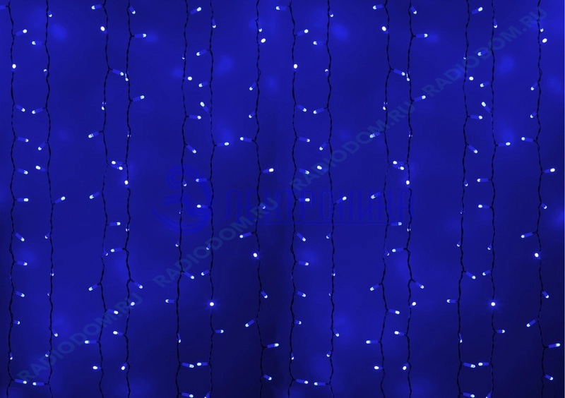 Гирлянда светодиодная 2,0x1,5м 360LED синяя, провод черный ''Плей Лайт Дождь'' 235-123 Неон-Найт