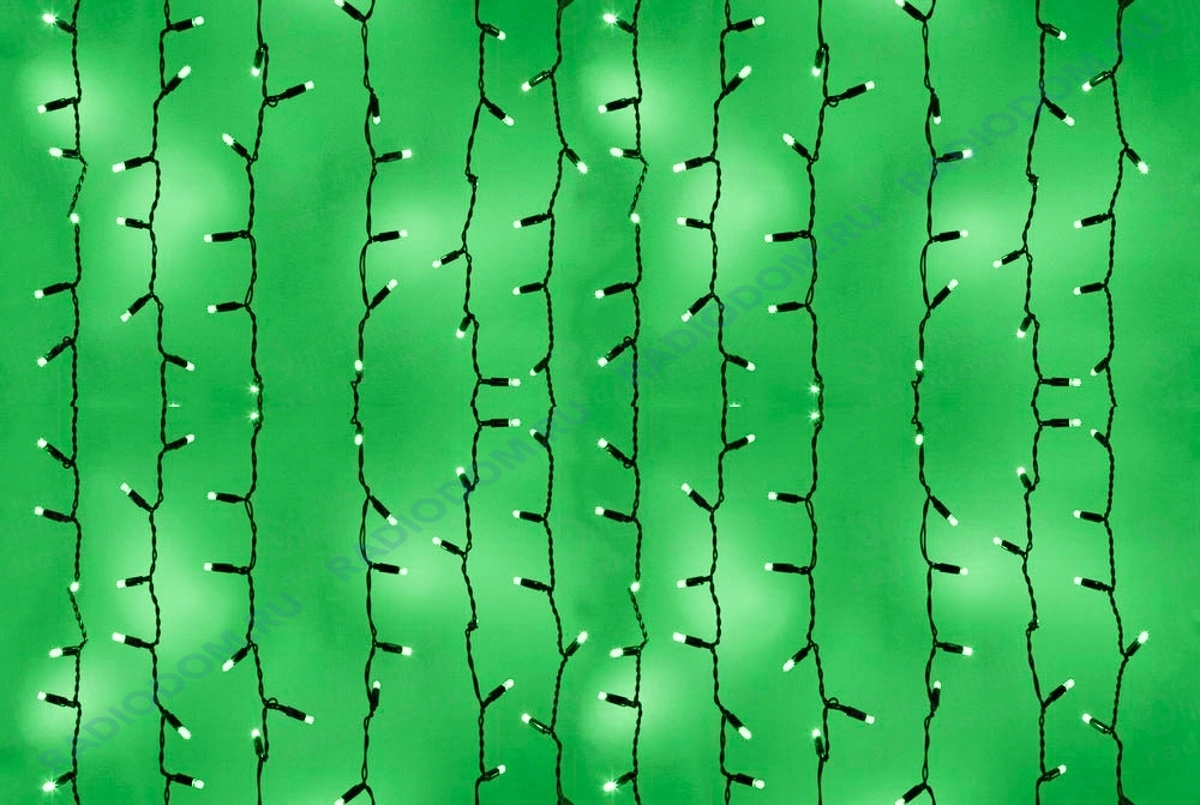 Гирлянда светодиодная 2,0x3,0м 760LED зеленая, провод черный ''Плей Лайт Дождь'' 235-144 Неон-Найт