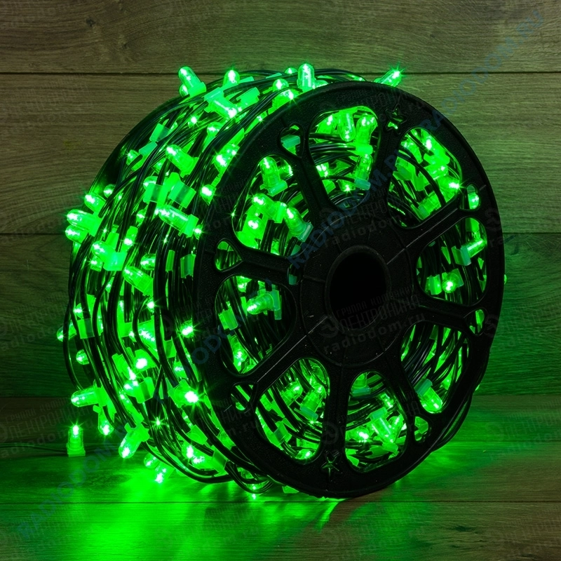 Гирлянда светодиодная 660LED x100м зеленая, провод черный ''Клип Лайт Спайдер Каучук'' 12В с трансформатором 325-124 Неон-Найт