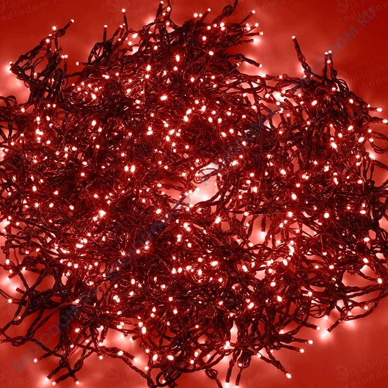 Гирлянда светодиодная 5 нитей x20м 665LED красная-мерцающая, провод черный ''Клип Лайт Спайдер Каучук'' 24В с трансформатором 323-602 Неон-Найт
