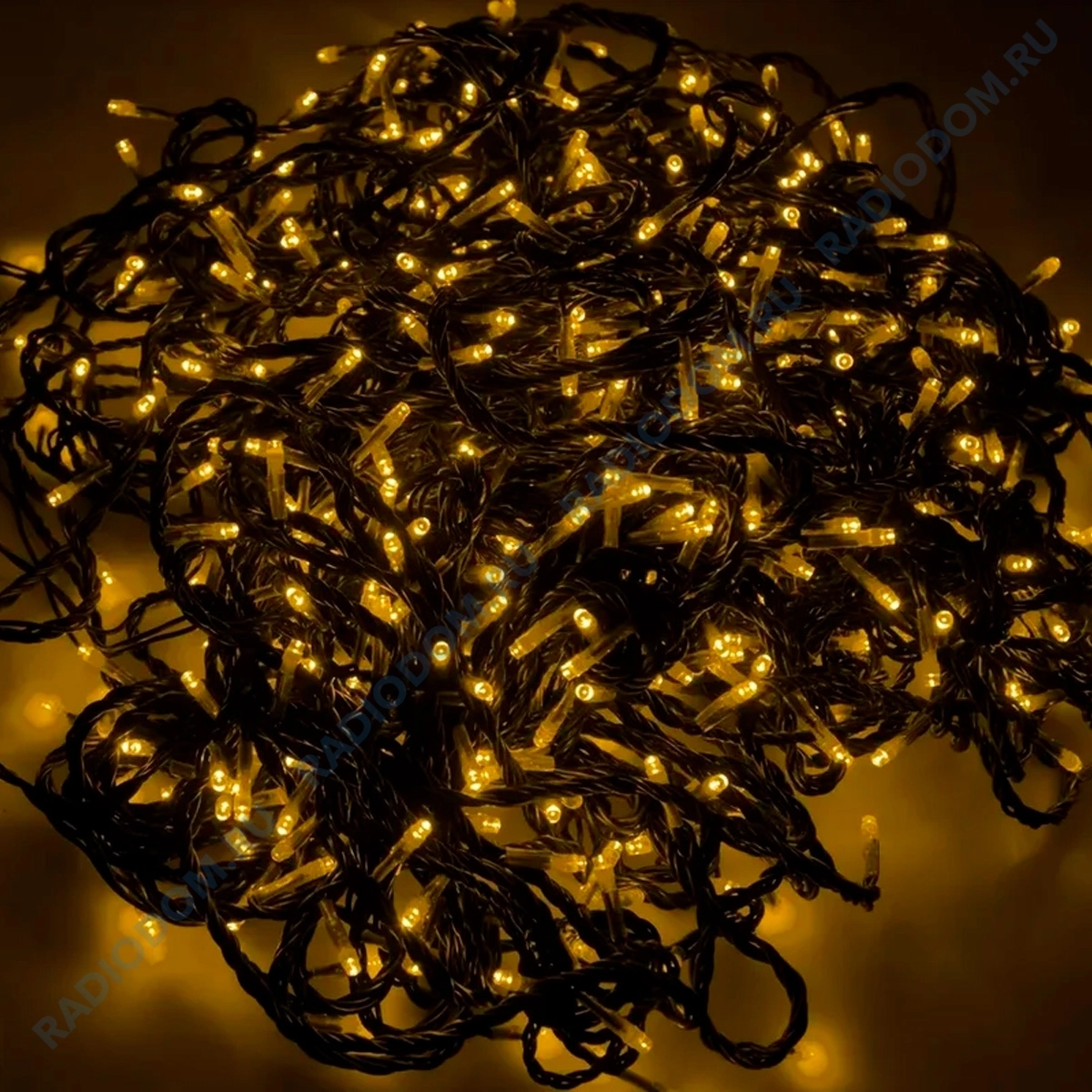 Гирлянда светодиодная 3 нити x20м 399LED желтая, провод черный ''Клип Лайт Спайдер Каучук'' 24В с трансформатором 323-301 Неон-Найт
