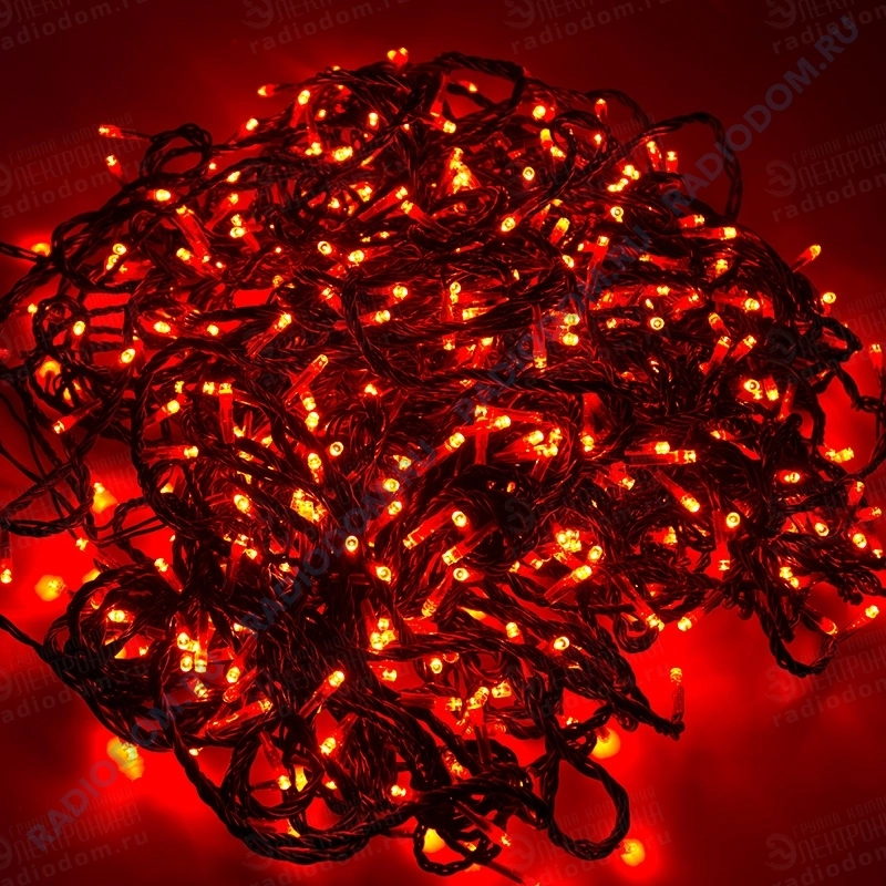 Гирлянда светодиодная 3 нити x20м 399LED красная, провод черный ''Клип Лайт Спайдер Каучук'' 24В с трансформатором 323-302 Неон-Найт