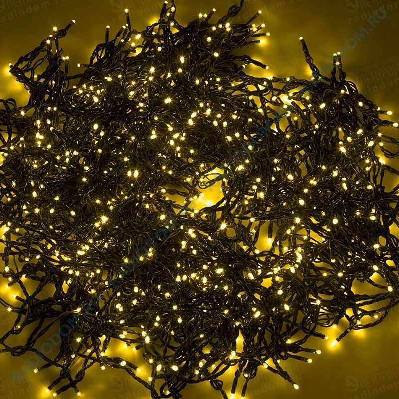 Гирлянда светодиодная 5 нитей x20м 665LED желтая, провод черный ''Клип Лайт Спайдер Каучук'' 24В с трансформатором 323-501 Неон-Найт
