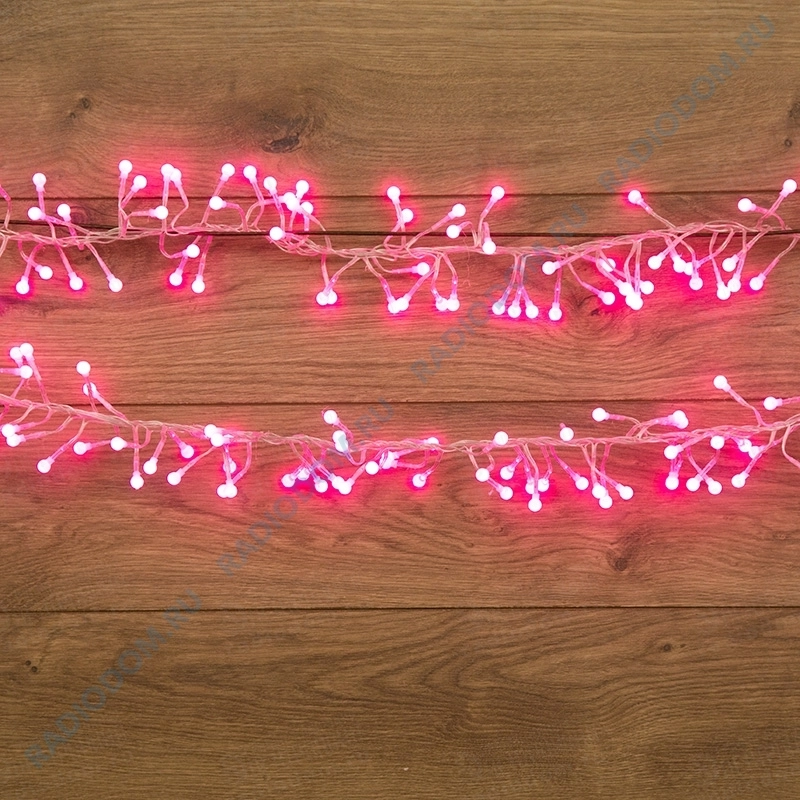 Гирлянда светодиодная 6м 576LED розовая, провод прозрачный ''Мишура'' 303-617 Неон-Найт