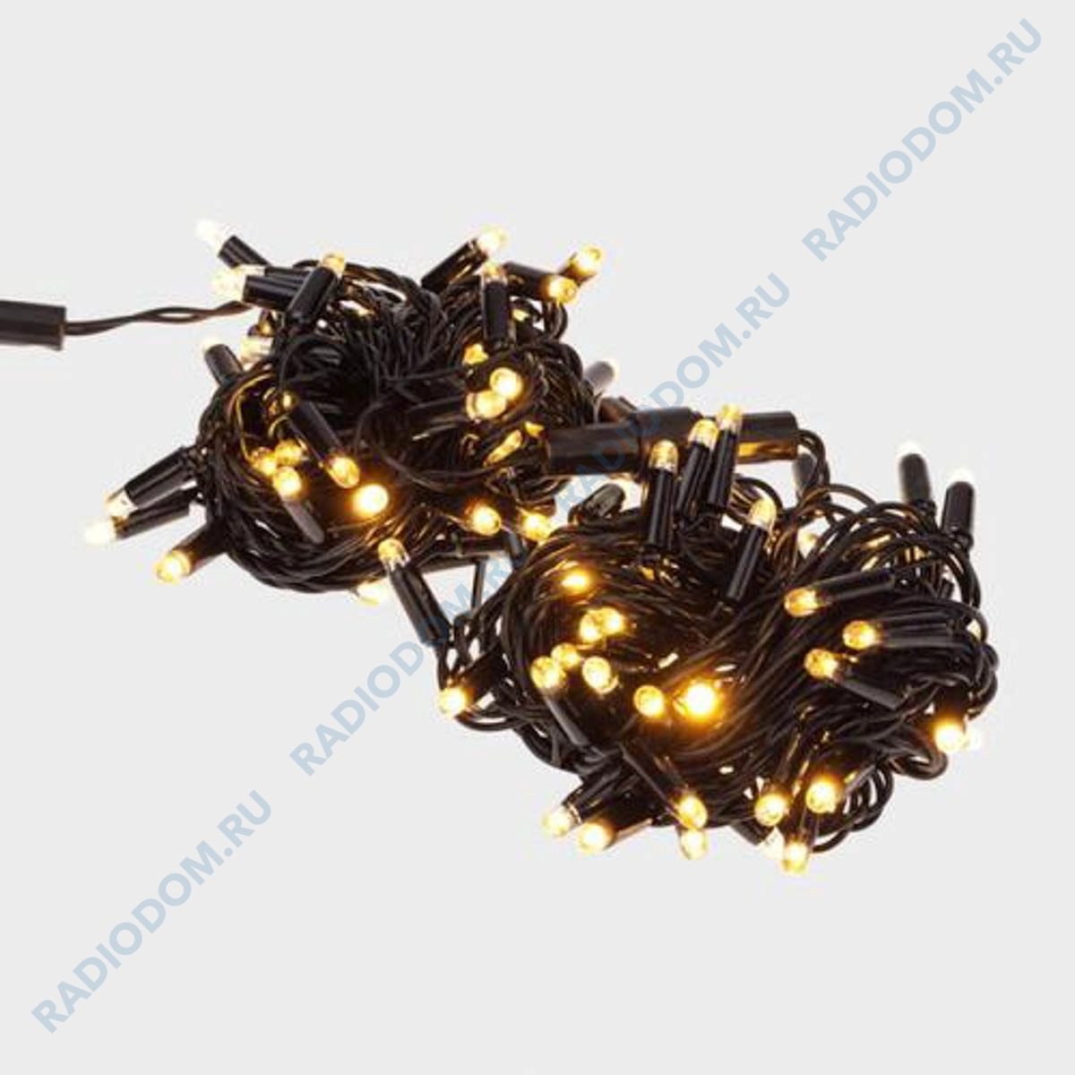 Гирлянда светодиодная 10м 100LED белая-теплая, провод черный ''Нить'' 305-176 (нужен шнур питания 303-500) Неон-Найт