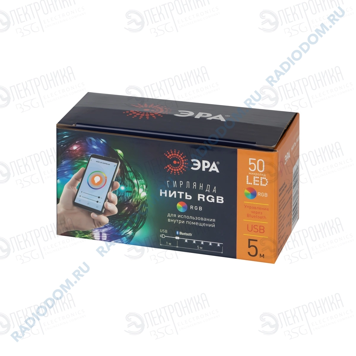 Гирлянда светодиодная 5м 50LED RGB-мерцающая, провод серебристый ''Нить'' Б0055994 ЭРА