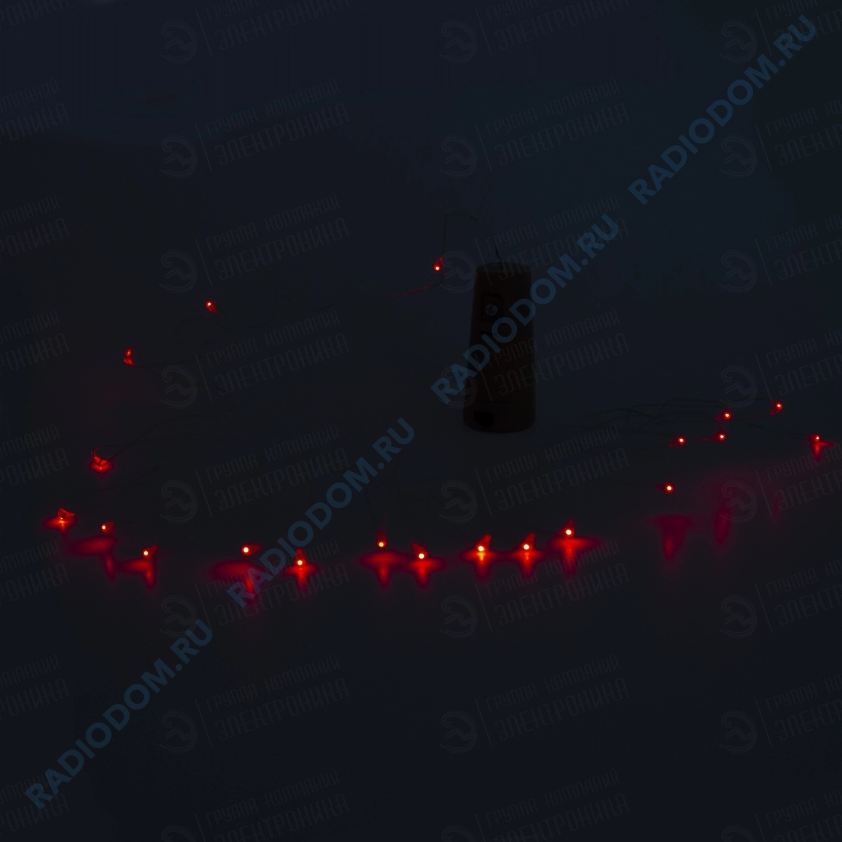 Гирлянда светодиодная 2м 20LED красная, провод прозрачный ''Роса'', питание 2xLR44 SveTka