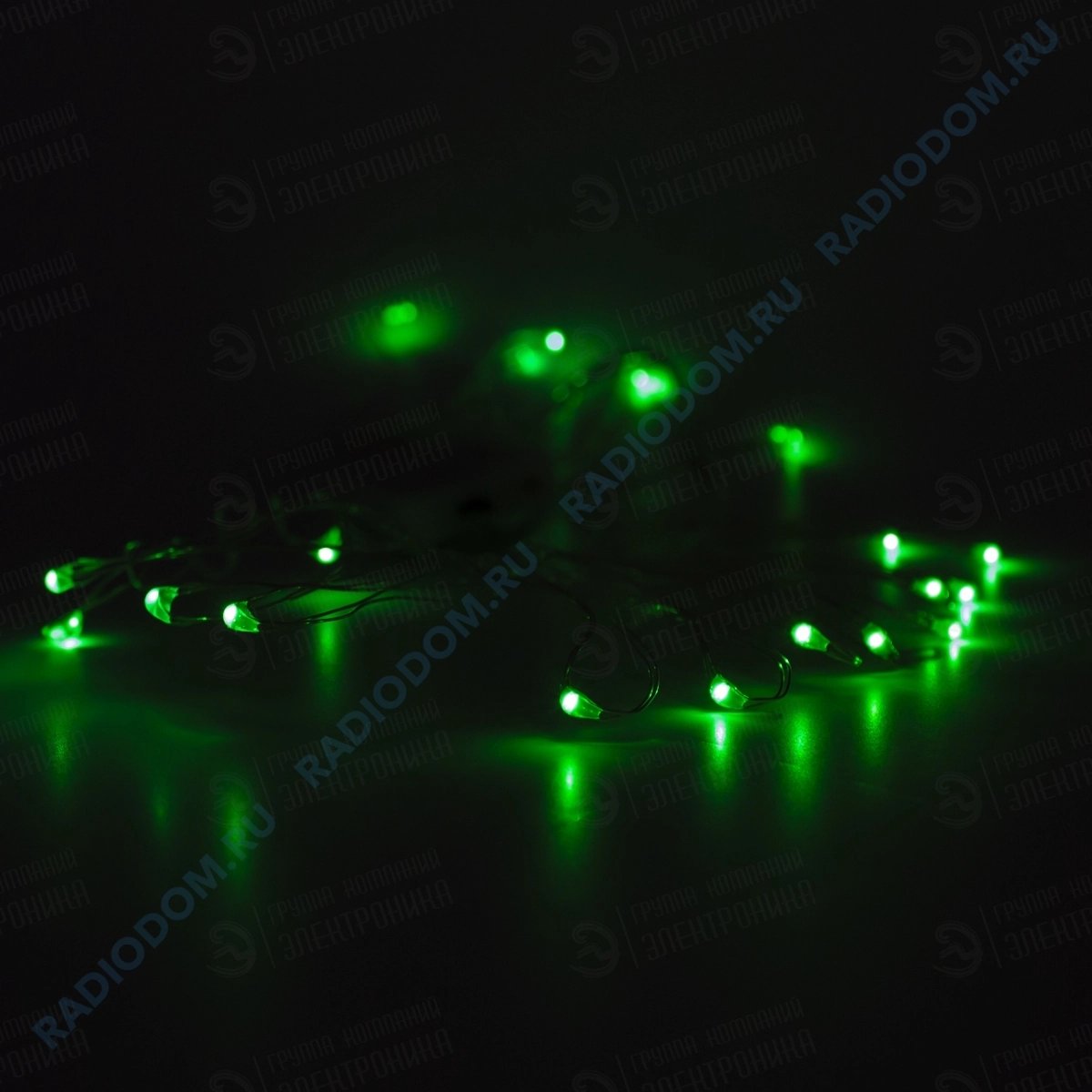 Гирлянда светодиодная 2м 20LED зеленый, провод прозрачный ''Роса'', питание 2xCR2032 SveTka