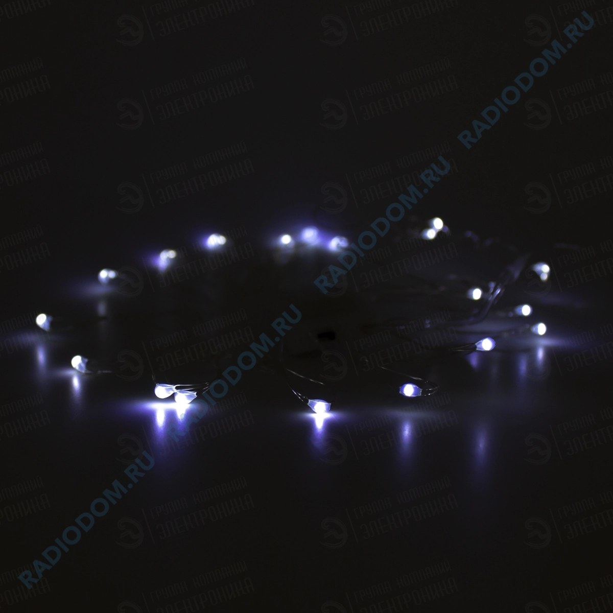 Гирлянда светодиодная 2м 20LED белый, провод прозрачный ''Роса'', питание 2xCR2032 SveTka