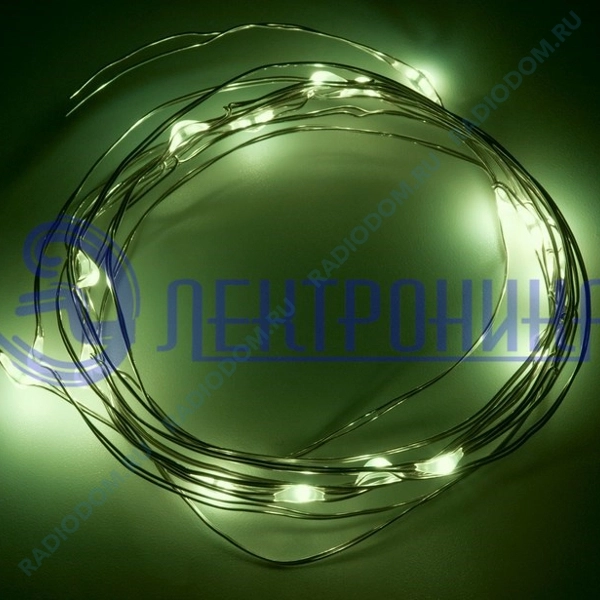 Гирлянда светодиодная 2м 20LED зеленая, провод черный ''Роса'', питание 3xAA 303-008 Неон-Найт