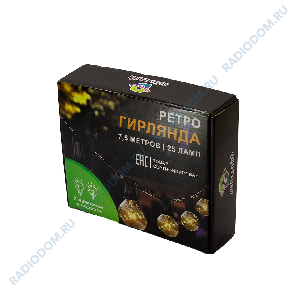 Гирлянда светодиодная 7,5м 25LED белая, провод черный Ø40,0мм ''Шарики Лофт'' SveTka