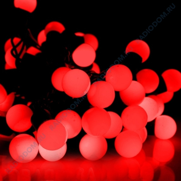 Гирлянда светодиодная 20м 200LED красная, провод черный Ø17,5мм ''Шарики'' 24В 303-522 Неон-Найт уцененный товар