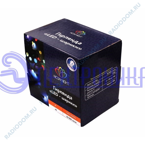 Гирлянда светодиодная 10м 80 LED мультиколор, провод черный Ø17,5-23-17,5-45мм ''Шарики'' 303-589 Неон-Найт
