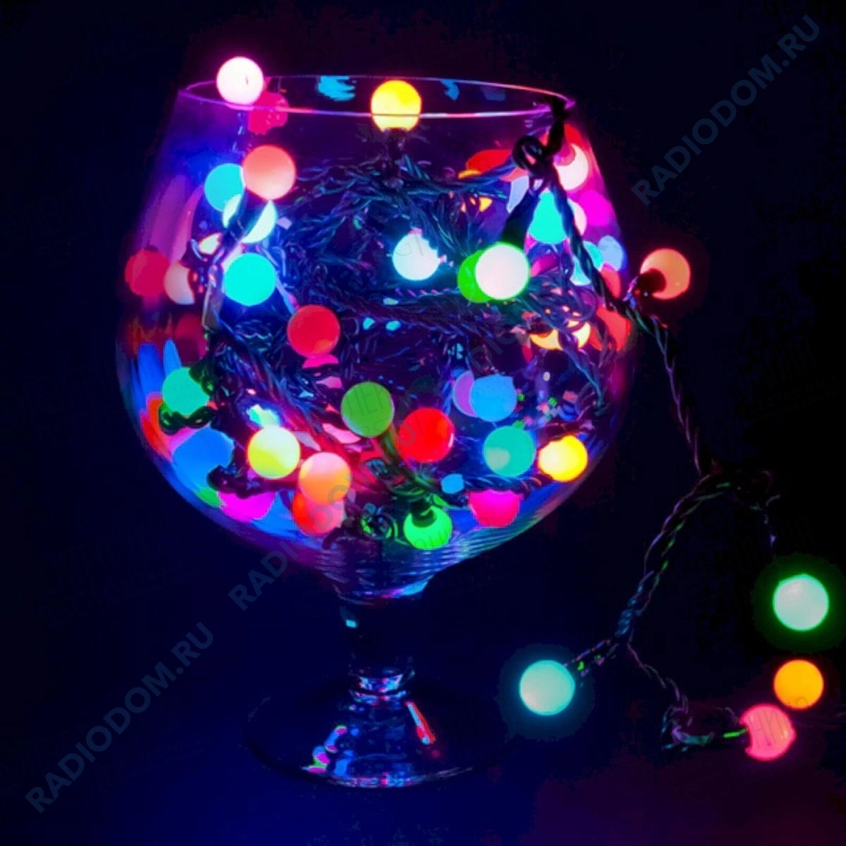Гирлянда светодиодная 20м 200LED мультиколор, провод черный Ø17,5мм ''Шарики'' 303-509 Неон-Найт