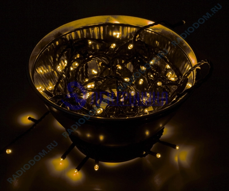 Гирлянда светодиодная 10м 100LED желтая, провод черный ''Твинкл Лайт Чейзинг'' с контроллером 303-131 Неон-Найт