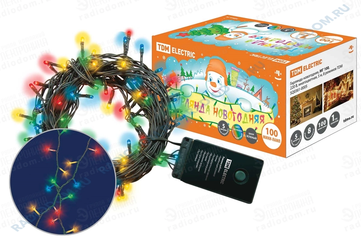 Гирлянда новогодняя многоцветная, МГ 100, 220В, 5м, 8режимов TDM ELECTRIC SQ0361-0005