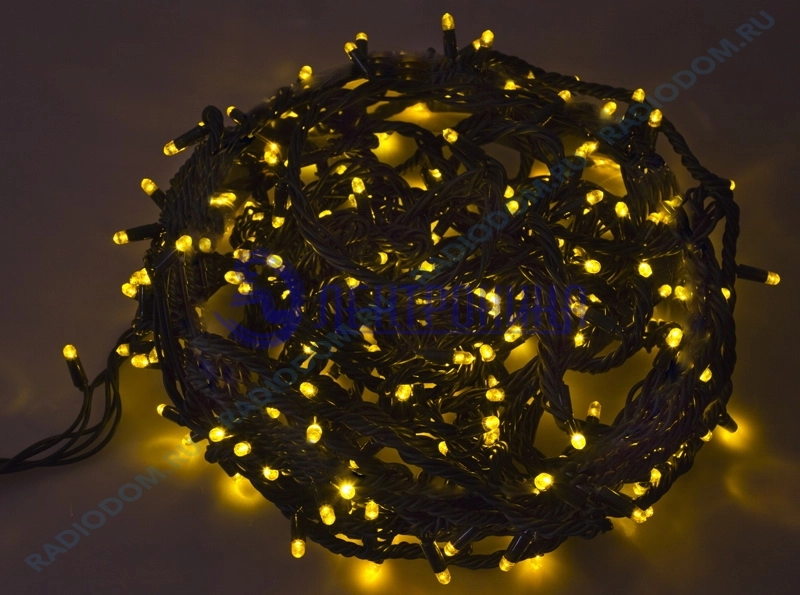 Гирлянда светодиодная 20м 240LED желая, провод черный ''Твинкл Лайт Чейзинг Каучук'' с контроллером 303-321 Неон-Найт
