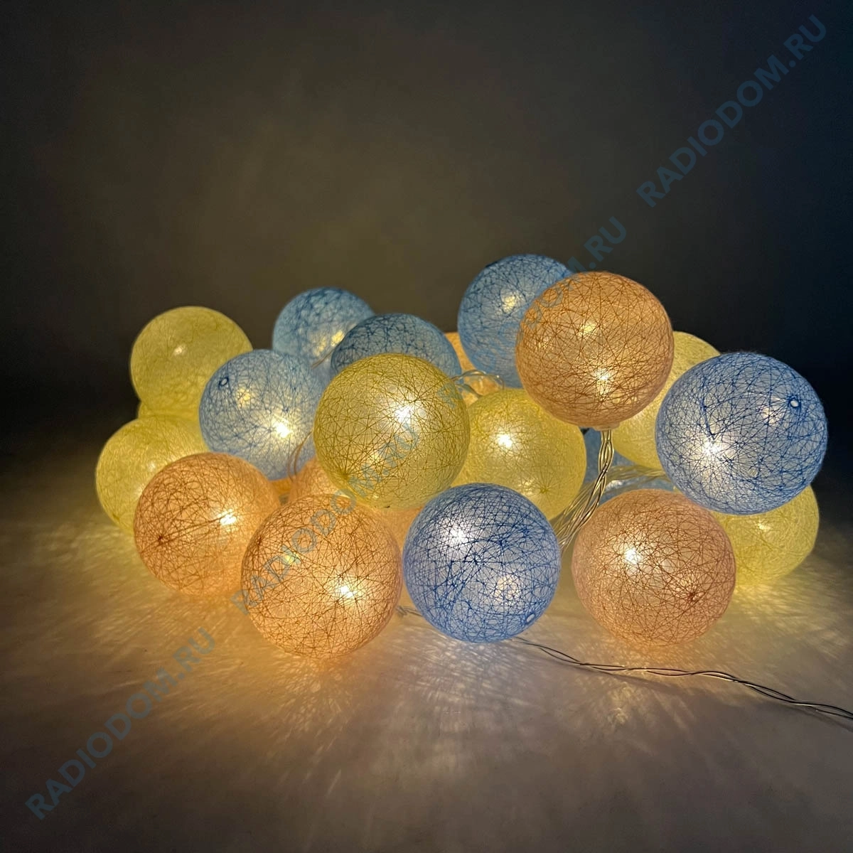 Гирлянда светодиодная 5м 25LED белый теплый, провод прозрачный ''Перламутр'' тайские фонарики, питание USB 304-010 Неон-Найт