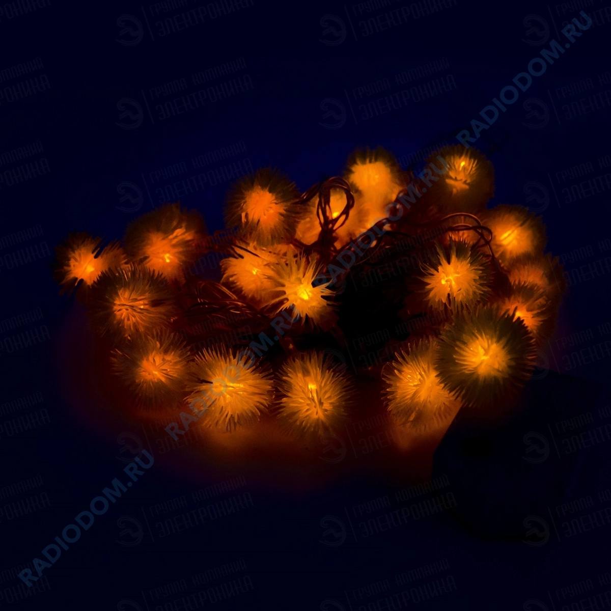 Гирлянда светодиодная "Ежики" LED 5м, 30LED, желтая, провод позрачный