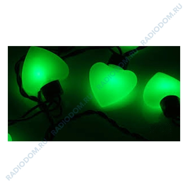 Гирлянда светодиодная "Сердца" LED 5м, 20LED, зеленая, провод черный HEART-5000W-20LED-50mm 019836 Arlight