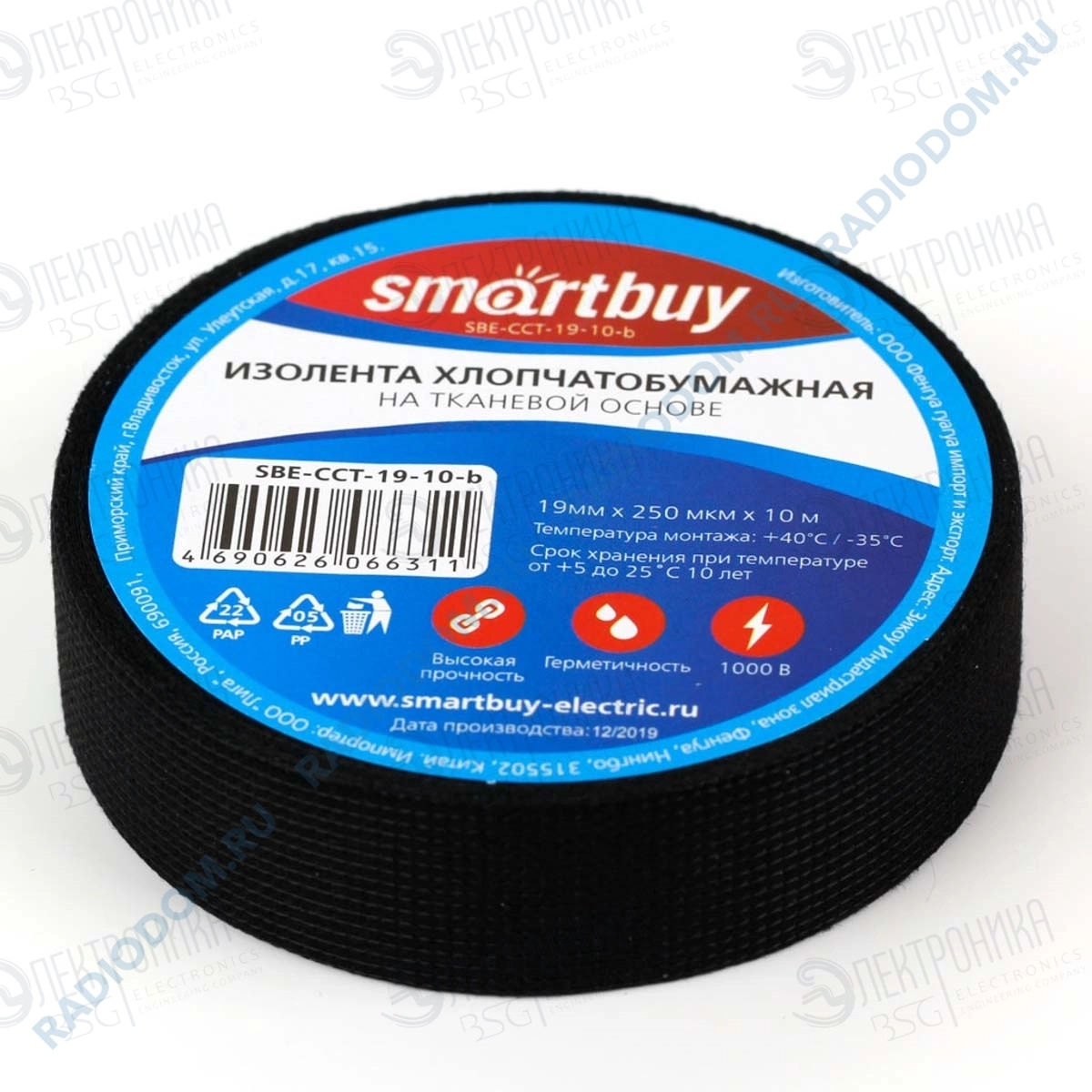 Изолента матер х/б 0,25ммх19ммх10м черная Smartbuy