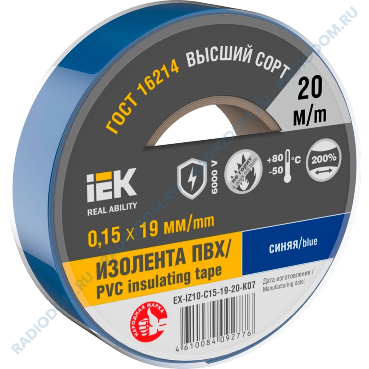 Изолента ПВХ 0,15ммх19ммх20м синяя iEK
