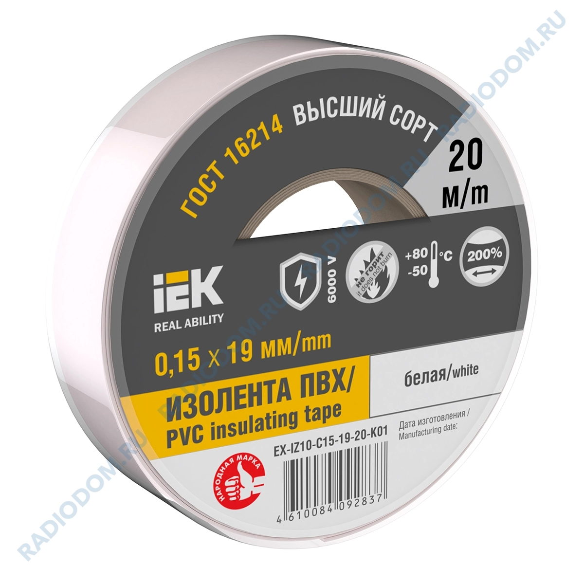Изолента ПВХ 0,15ммх19ммх20м белая iEK