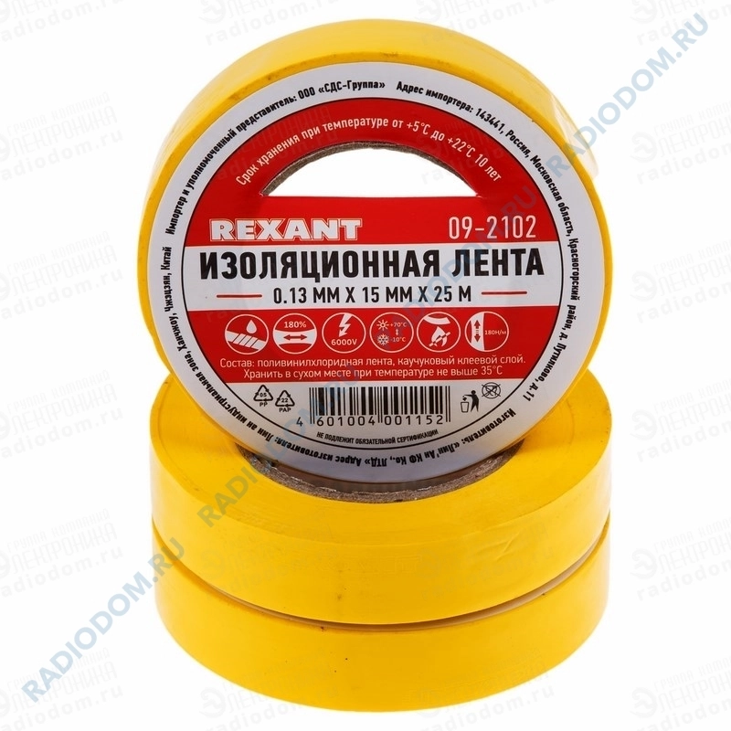 Изолента ПВХ 0,13ммx15ммx25м желтая Rexant