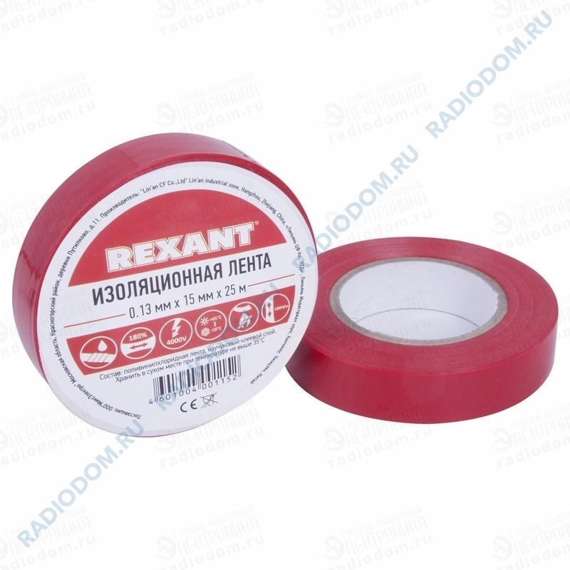 Изолента ПВХ 0,13ммx15ммx25м красная Rexant