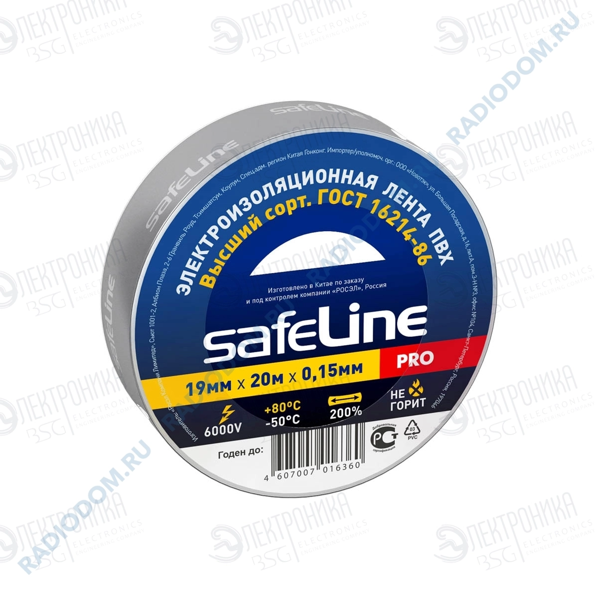 Изолента ПВХ 0,15ммx19ммx20м серая Multech 911 PRO SafeLine