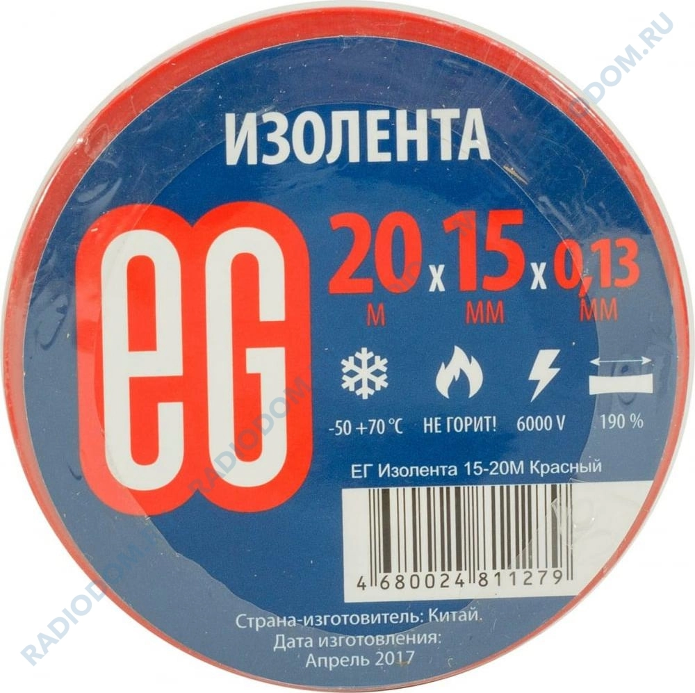 Изолента ПВХ 0,13ммх15ммх20м красная EG