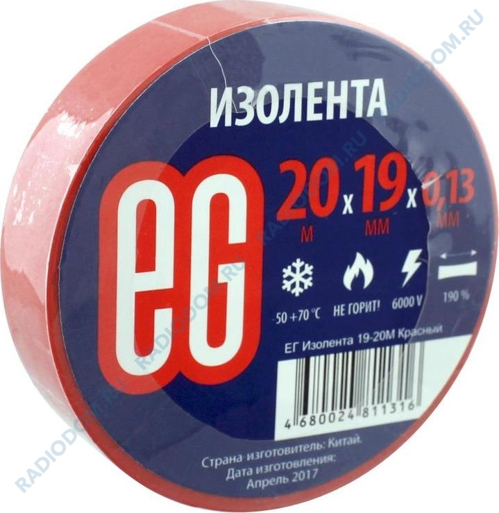 Изолента ПВХ 0,13ммх19ммх20м красная EG