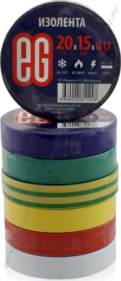 Изолента ПВХ 0,13ммх15ммх20м 5 цветов 10шт EG