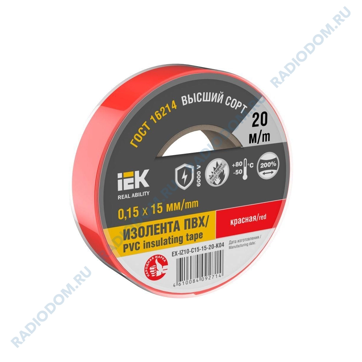 Изолента ПВХ 0,15ммх15ммх20м красная iEK