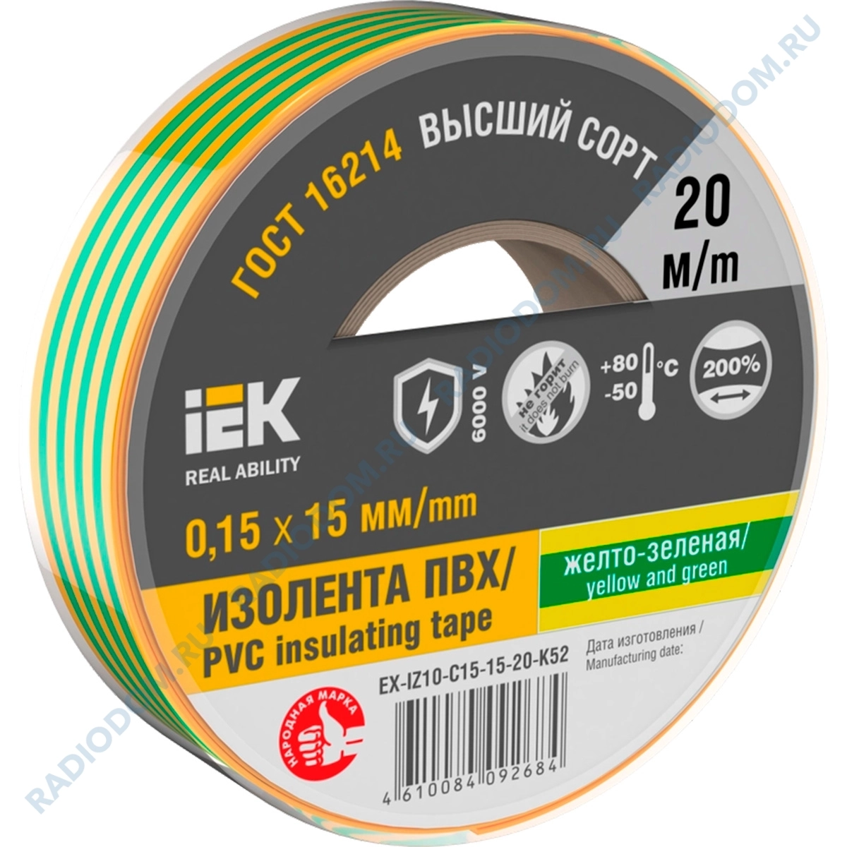 Изолента ПВХ 0,15ммх15ммх20м желто-зеленая iEK