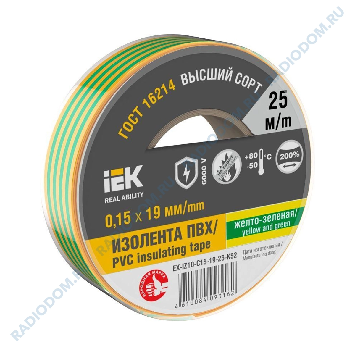 Изолента ПВХ желто-зеленая 0,15ммх19ммх25м iEK